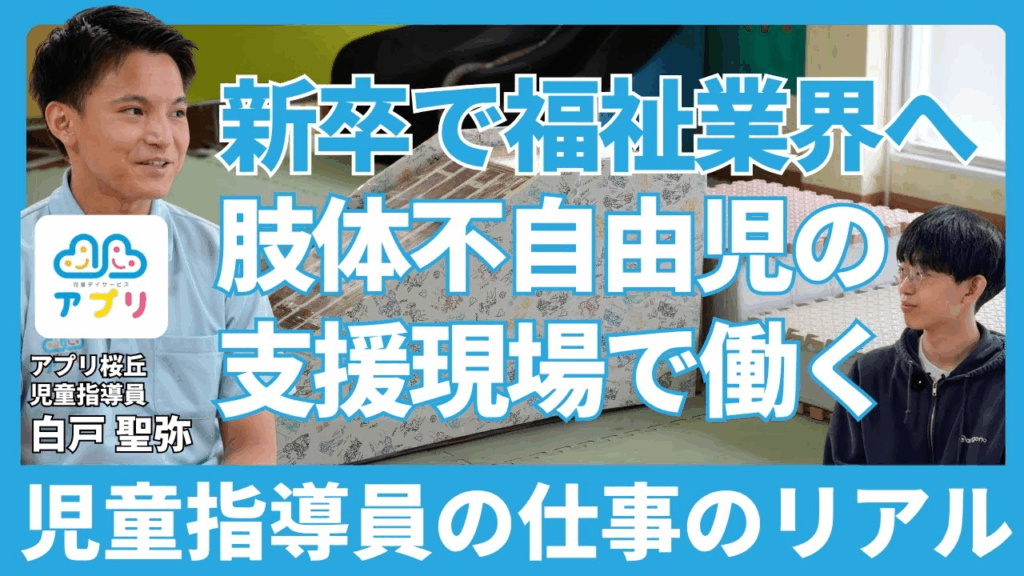 大学で福祉を学び、新卒で放課後等デイサービス「アプリ桜丘」(東京都世田谷区)に入社した児童指導員 白戸聖弥さんにお話を伺いました。身体に障害のあるお子さんへの支...